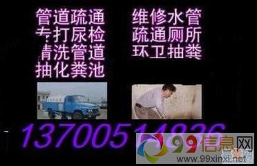 1、 疏通下水道:家庭、酒店、公司、学校等单位的下水道;小便池、阴沟、窑井、化粪池等各种下水管道疏通清理,污水管道疏通清理欢迎www.99xinxi.net。